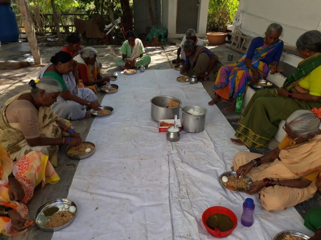 Many of the beneficiaries are senior citizens aged between 60 and 90 years, living in thatched huts and unable to work due to frail health. Through our Meal Donation Program in Budhavarapeta, an urban slum near the graveyard area in Kurnool, we serve nutritious lunches daily to 30 elderly individuals. Each meal includes steam-cooked rice, leafy vegetable dal, traditional sambar, seasonal pickle, fresh fruits, and buttermilk — ensuring both nutrition and taste.