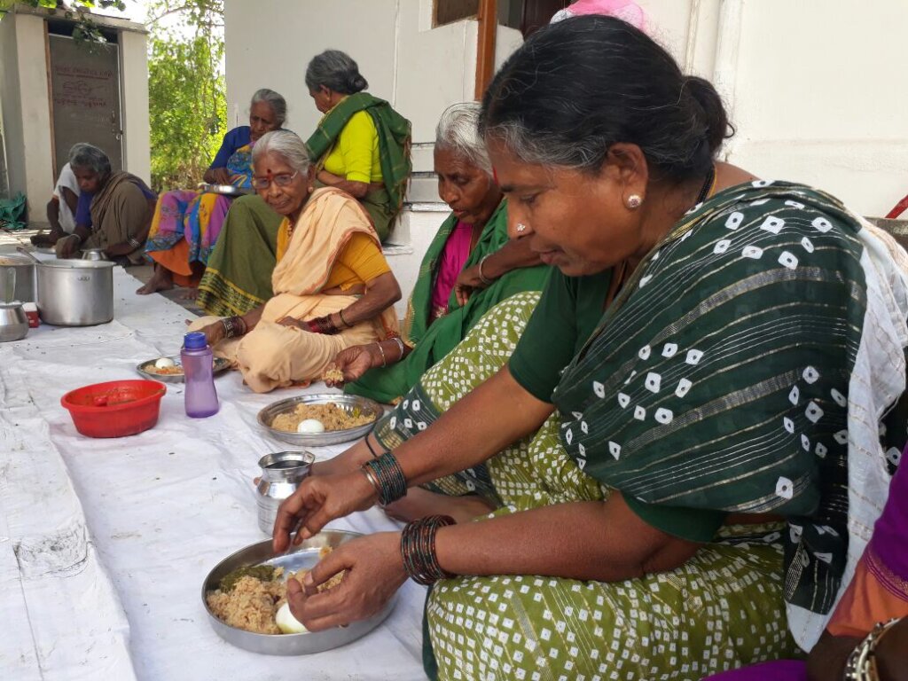 Our program is based in Budhavarapeta Slum, where we set up a kitchen to prepare and serve meals to these elderly individuals. We brought them together, encouraging them to gather daily for a reliable and nutritious lunch. Meals are served at 1:30 p.m., and the menu includes steamed rice, dal, seasonal pickles, sambar, chutney, vegetable curry, curd, and other nutritious items. This food provides essential nourishment and has had a remarkable impact on the health and well-being of these older adults, who now experience a renewed sense of dignity and hope.
