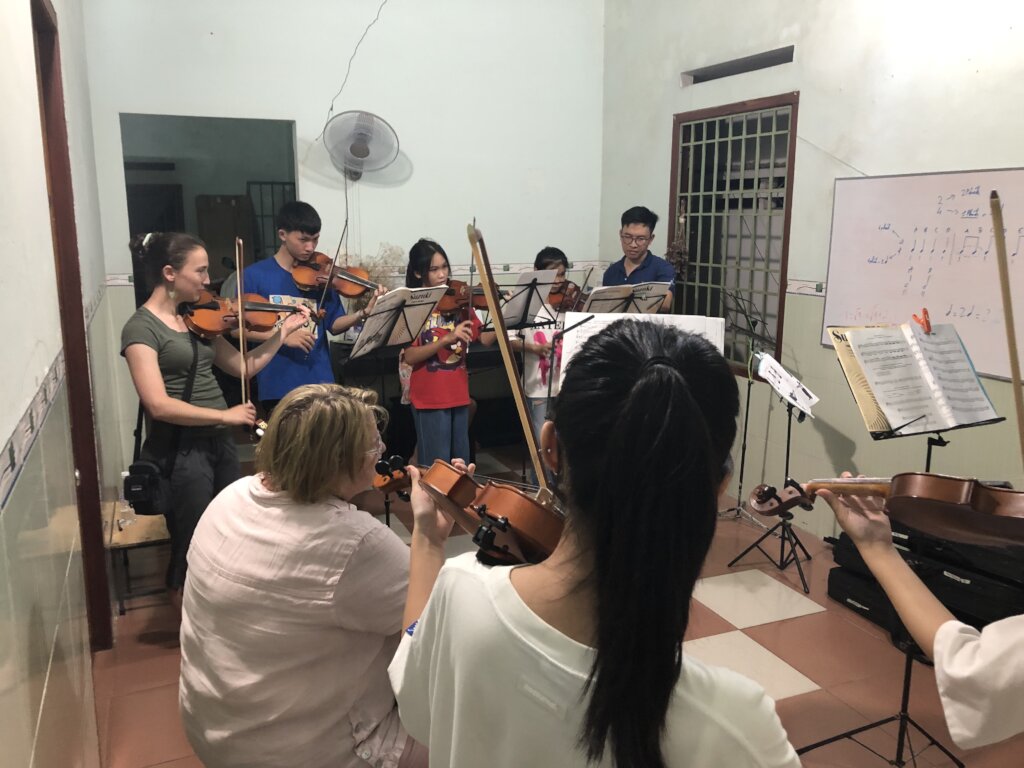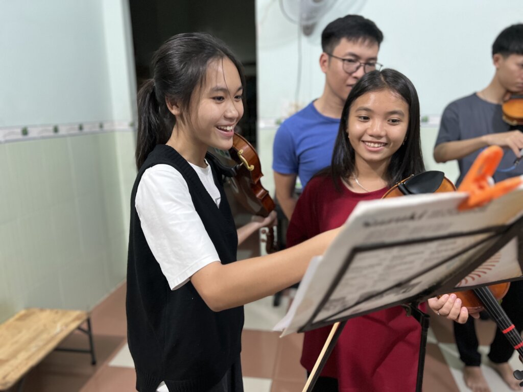 This is Anh, she is 17 years old and is currently a senior in High School. Anh is a very talented violinist. She has been one of our students for six years and is now one of our strongest musicians. The way that she holds her violin, moves while playing, and focuses, she clearly loves the violin. When we asked Anh how she spends her time when she is not studying, she said that she loves to read, listen to music, and play her violin, music is a passion of hers.