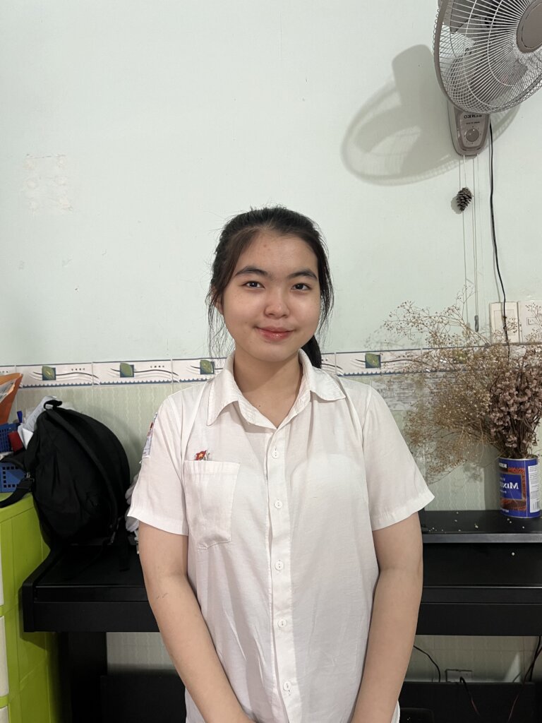 Anh has a very loving family. Her father is a mango farmer, her mother stays at home, and she has a younger brother who is in the 8th grade. Anh is a very good student, and her favorite subject in high school is math because she says she loves the assignments in calculus the best! Anh has also been learning English and plans to go to college in the fall of 2024. She is hoping to get a job as a manager one day, and she would love to also teach music, and maybe for Rock-Paper-Scissors even!