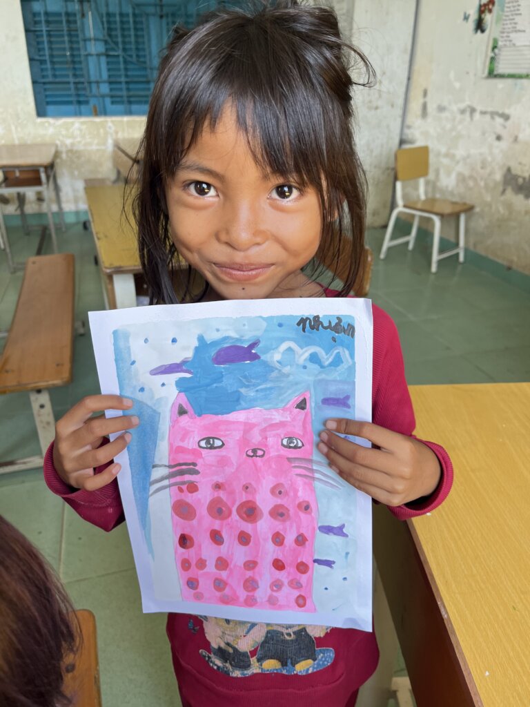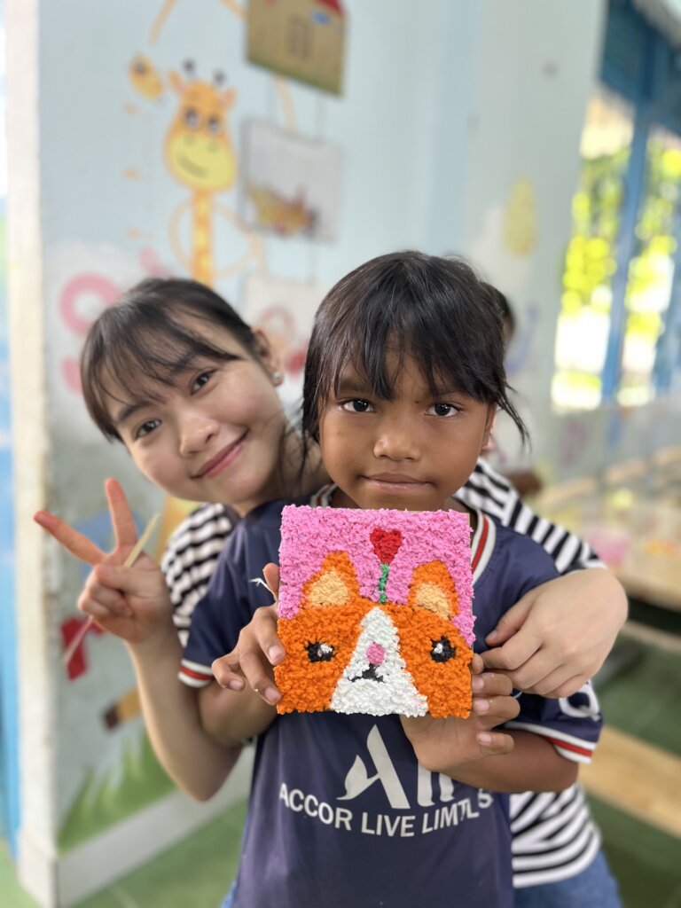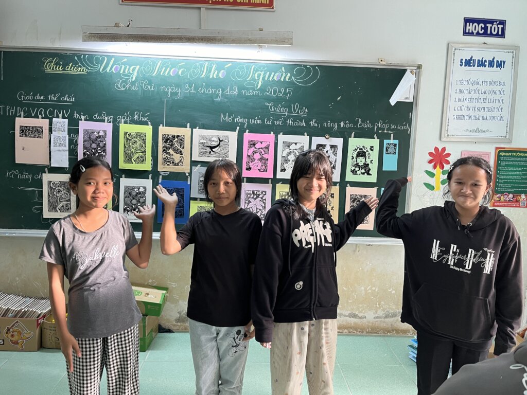 This spring, we also have two exciting updates to share regarding our art program. Last summer, we launched our first Summer Internship Program for college-age art and art education majors. We welcomed four female students from the Ho Chi Minh City University of Fine Arts for a one-month teaching internship with Rock-Paper-Scissors. The program went exceptionally well. Our four interns were wonderful with the students, making them feel supported and encouraged while also gaining valuable hands-on teaching experience themselves. They were warmly welcomed by our staff and two art teachers, and together they formed long-lasting bonds. After talking with both students and teachers, it’s clear that the interns were truly cherished, and there is strong enthusiasm for welcoming more in the future. Reflecting on the success of this pilot, we are making this part of our programming for girls, leadership and education, and are currently in the process of recruiting four new interns for summer 2026.