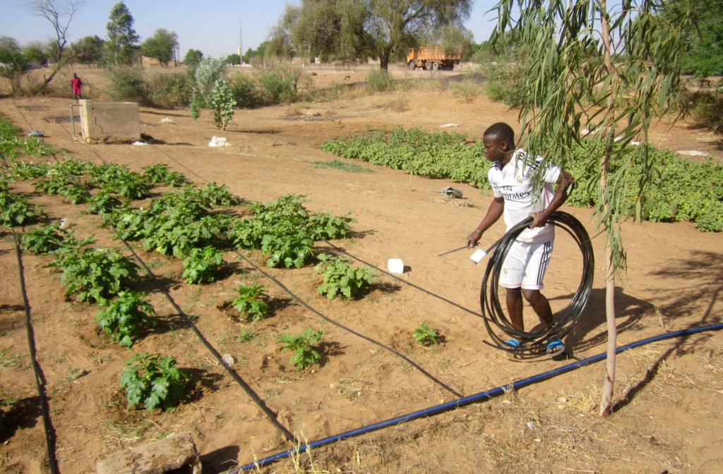 Over the past year, your donations helped CREATE! support the agricultural cooperative in Ouarkhokh and have now funded the installation of a drip irrigation system in the cooperative’s expanded garden site. Just a few weeks ago, CREATE! field technicians worked with community volunteers to install the drip irrigation system in two acres of land within the garden site. By providing access to a drip irrigation system, cooperative members can increase the amount of irrigated land in their garden plot by 75% and greatly expand their production of vegetables for both home use and sale in local markets. The drip irrigation system will help cooperative members save money, time, and labor through efficient water use.