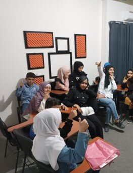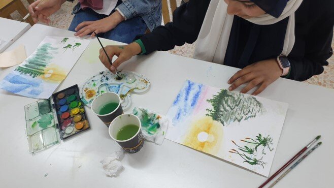 As for the drawing sessions, the evaluation of the students was done in December 2023 where a break was given to the students to put a new plan for them for the year 2024. Also, in December we launched a book club "Kashkoul Al-Qeraa" on Arabic World Day. Drawing sessions are the best place for students to express themselves and learn new techniques whether in graphite coloring and shadowing, water coloring, or even cartoonish self-portraits.