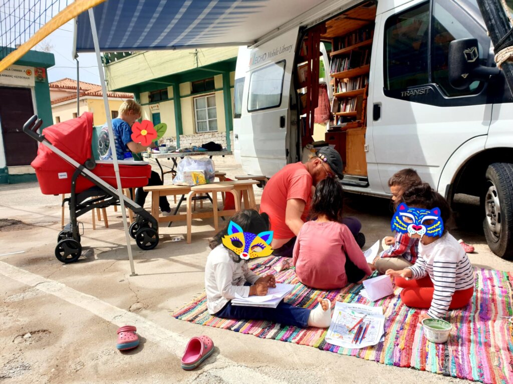 Our runaway success was the start of our sessions at Thiva, a camp we had been unable to visit before due to our timetable. We also started up library sessions at Oinofyta camp once again, where we could reconnect with friends who had been transferred there after being evicted from their own self-organised camp in Lavrio in July. Residents from there are, unsurprisingly, not happy about the living conditions, complaining about the lack of services, distance from Athens and lack of autonomy. These are the same complaints that everyone has about all the camps, the same things we have been hearing for six years now. When we announced our first session at Oinofyta with them in September it was hard to work out who was happier to see one another, us or them!