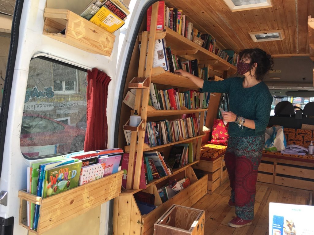 Our van doesn’t stay still, it continuously goes around, adapts and finds solutions, parking lots, back doors, community spaces, trying to maintain the bridge we built with our community of readers across Attica.