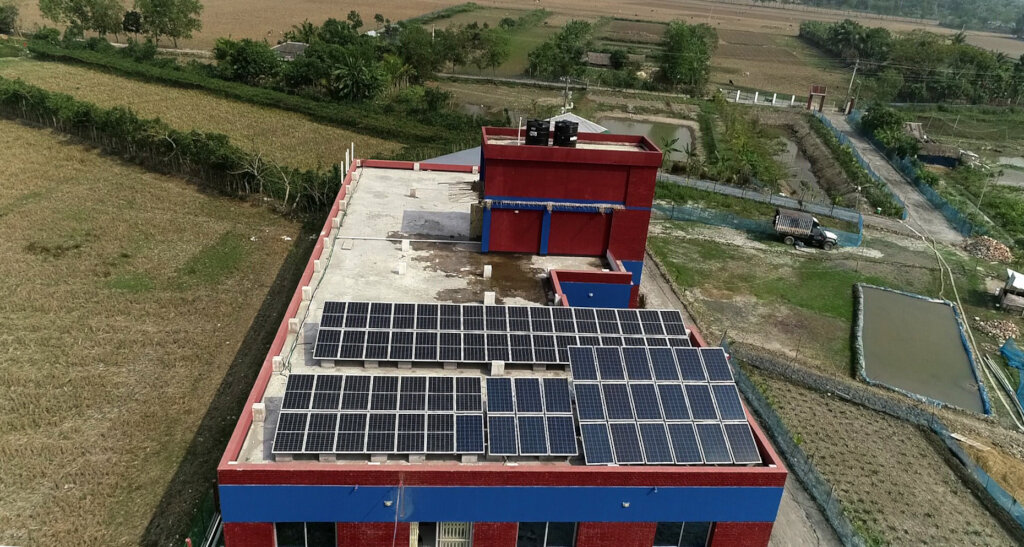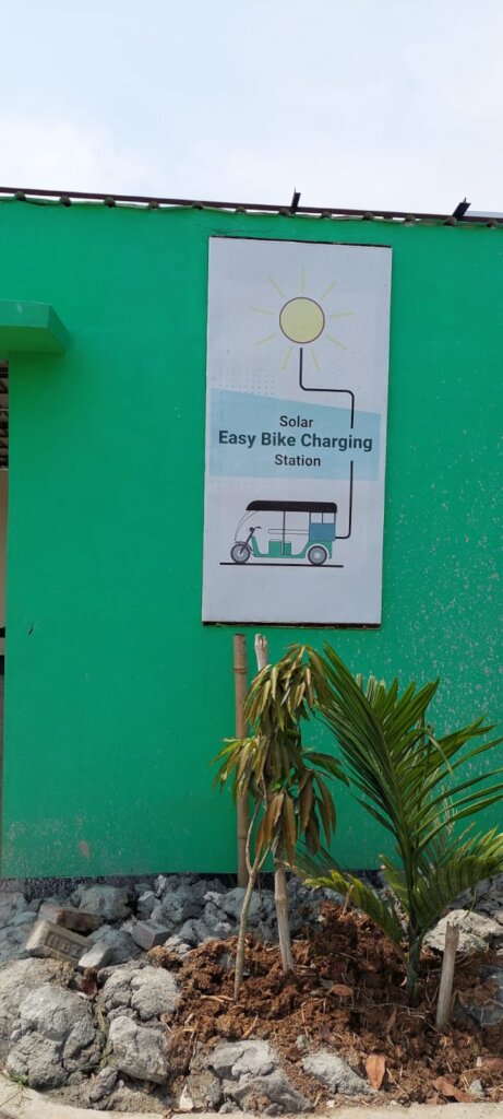 In eco village campus in Dacope a solar service station was installed. The capacity of the station is 18Kw/h. The ecovillage campus is running through this. Not only the general activity of the campus but also the village people charge their van and auto from this station. Water filtration station purify water by reverse osmosis which is run by solar. The needed electricity is 7-8 Kw/h of the campus. The excess electricity is added in the national grid.