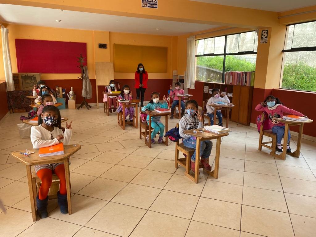 The three student families forced due to hunger to return to their rural family farm in the mountains still have not yet returned. We planned on 123 returning students for this school year, but two fathers refused to vaccinate their 4 daughters and after so much Covid illness and death in Cusco we must require vaccinations. So far we have 100 primary grade students (a few more to return soon) and 11 four-year old kindergarten girls. Returning to a somewhat normal life will take getting used to for everyone so we know a few more will return. Parents have needed older girls to work and those are probably some of the missing students now. Home visits will begins soon.