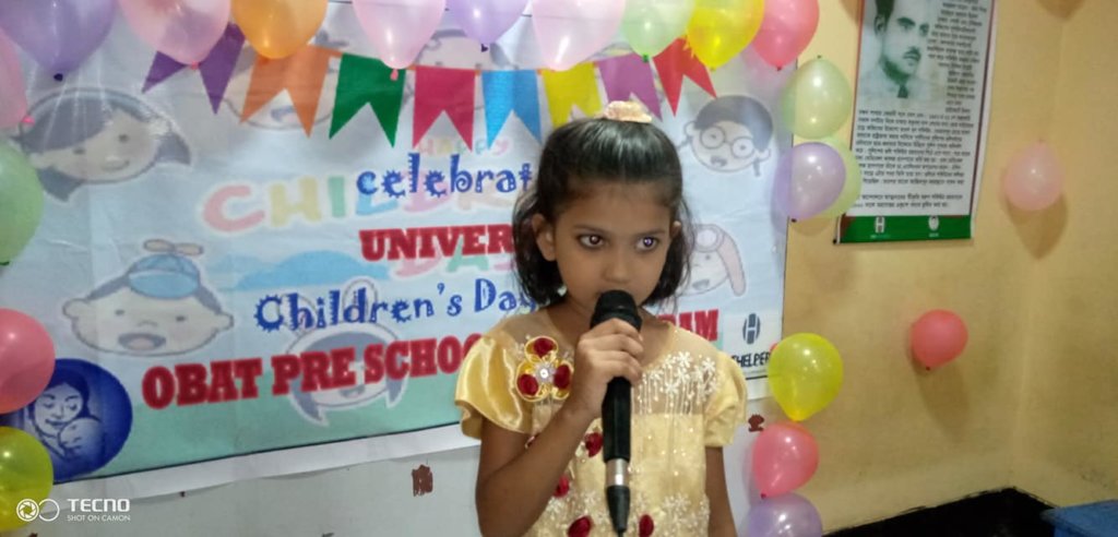 “My name is Samsad. I am a student of OBAT’s Preschool in Chittagong. I am six years old. I live in the BW-1 Camp in Khulsi, Chittagong.
