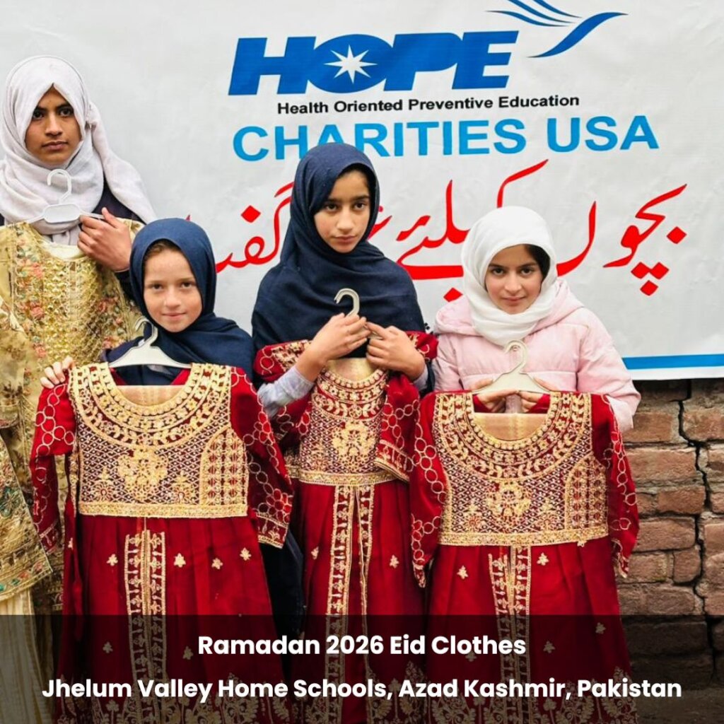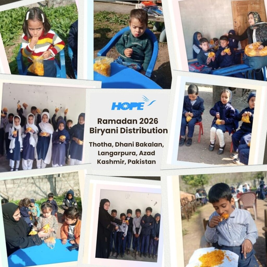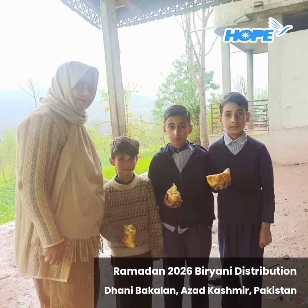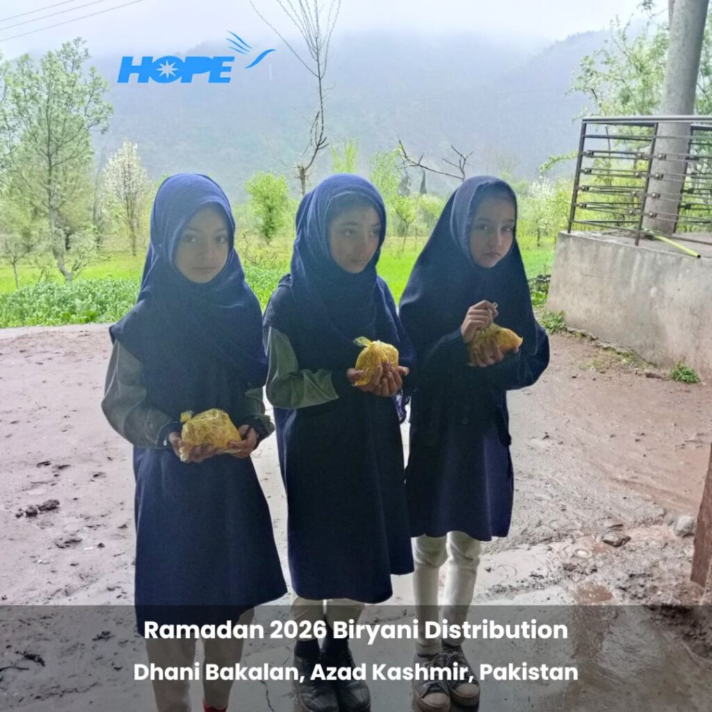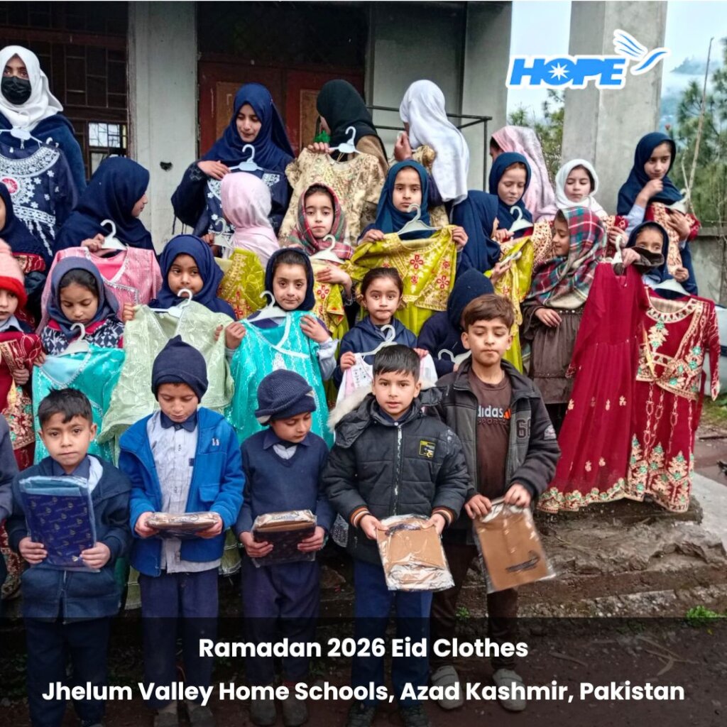Featured on this blessed day are some special pictures from our Sit-Down Iftar and Eid Clothes distribution for 450 underserved children studying in HOPE's Jhelum Valley, Azad Kashmir Home Schools. This event took place on March 19, 2026 at Parhor Home School in AJK and included children from various HOPE Home Schools scattered throughout Jhelum Valley. This effort was made possible by the contributions of our supporters. Enjoy!