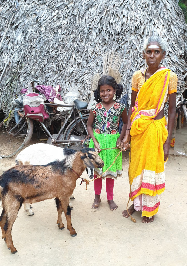 Very next day, I have visited her parents and provided two goats for their income. Now it is six months passed, the goats become 4, they are settled now here and their daughter is going to school regularly.