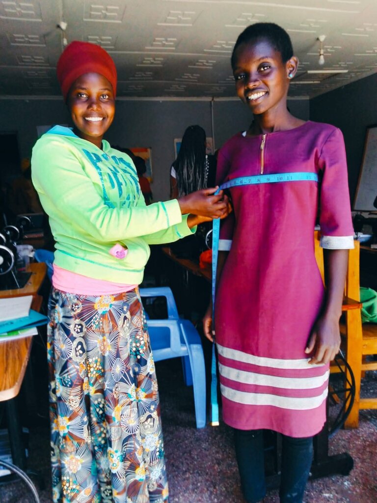 In tailoring and knitting classes, Mercy is developing her skills with focus and care. She is learning how to measure, cut, and construct garments properly, building both technique and confidence.
