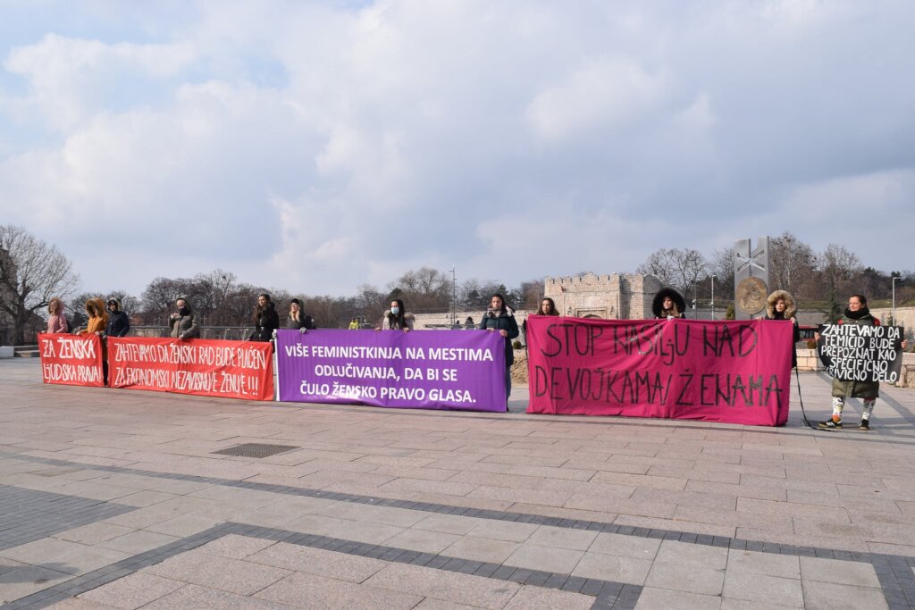 Activists of the Center for Girls in Niš held a street action on the occasion of the femicide that happened in Vršac, when a father killed his 2-year-old daughter, drowning her in a bucket of water, after the Center for Social Work allowed him to see the child, even though the girl's mother reported domestic violence several times in the past.
