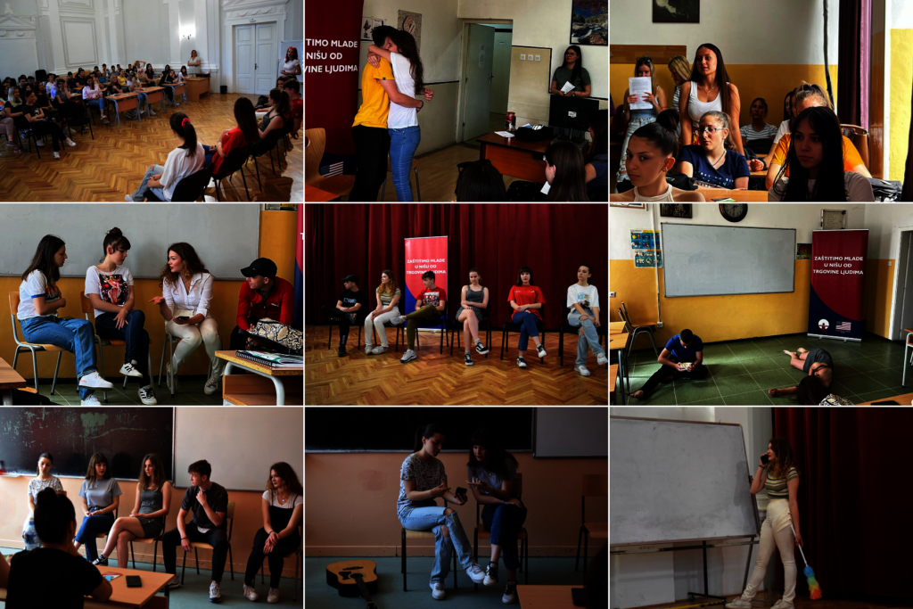 In ten secondary schools in Nis, where a team of seven young people performed educational theaters in front of their peers, interactive lectures on human trafficking were held for over a hundred teachers.