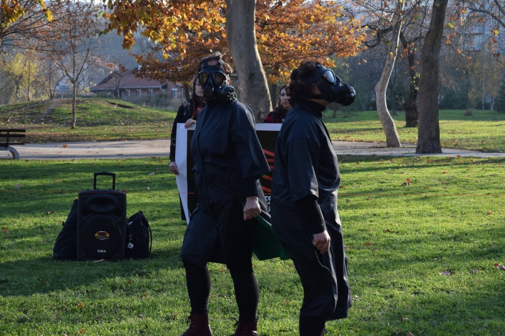 We performed the performance Women's Cemetery in memory of the Montreal Massacre and reminded the public that one woman is killed in Serbia on every 10 days.