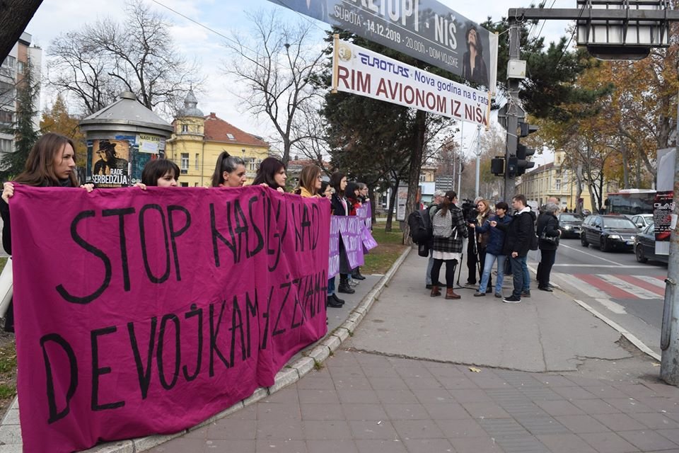 Once again we had a street action to support Marija from Brus who is suffered sexual harassment from her former boss. Court proceedings are being conducted against him. He was mayor of Brus while he sexual harassed her. We wanted to call for the accountability of the institution, but also for citizens not to remain silent.