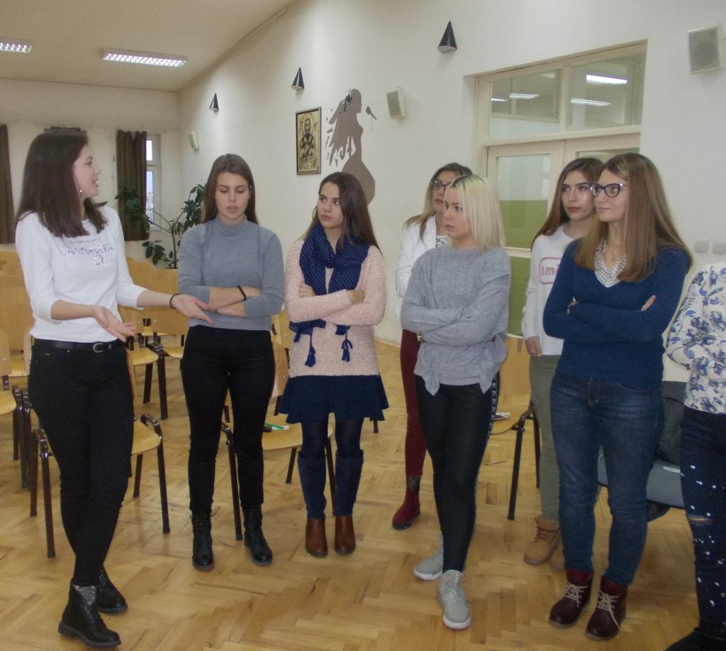 Workshops were done at the High School "Svetozar Markovic", Trade School and Law-Business School. The workshops were led by Marta Stanojevic, Anja Veselinovic and Marija Virijevic.