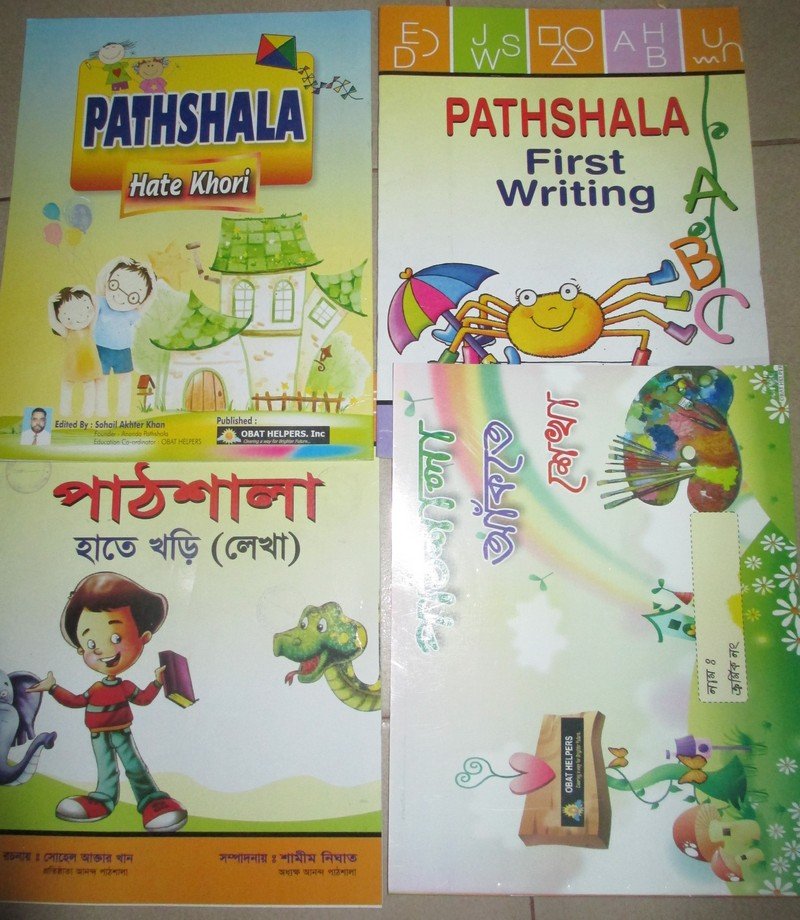 In the accompanying pictures, you will also see some of the text books used by the school. These have been designed by the Education Coordinator of OBAT, Sohail Akhter Khan and his wife, Shamim Akhter who serves OBAT in a voluntary capacity. The couple has extensive experience working with Concern Worldwide prior to joining OBAT. Concern Worldwide is an international nonprofit organization.