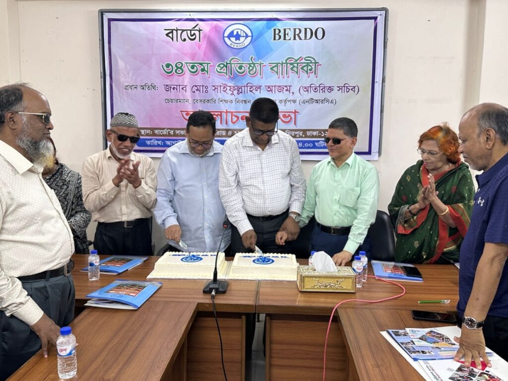 On 17th August, 34th anniversary of BERDO was celebrated with much fanfare. In this event, NCTB chairperson Md. Saifullahil Azam, an additional secretary, was present as chief guest. There was a discussion meeting on performance of BERD. Audiences, with huge applause, received the chief guest.