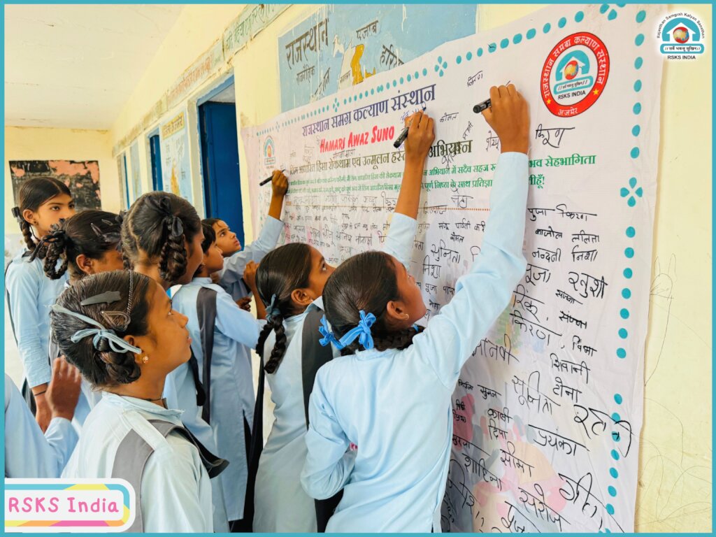Rajasthan Samgrah Kalyan Sansthan organized the impactful "Humari Awaz Suno Campaign", focusing on spreading awareness about Gender Equality. The campaign involved a dynamic workshop attended by 2350 school girls & boys from 47 different rural schools where they were introduced to the concept of gender equality through engaging mediums like flipcharts and storytelling. The interactive session helped the participants understand the importance of equal opportunities and rights for all genders.