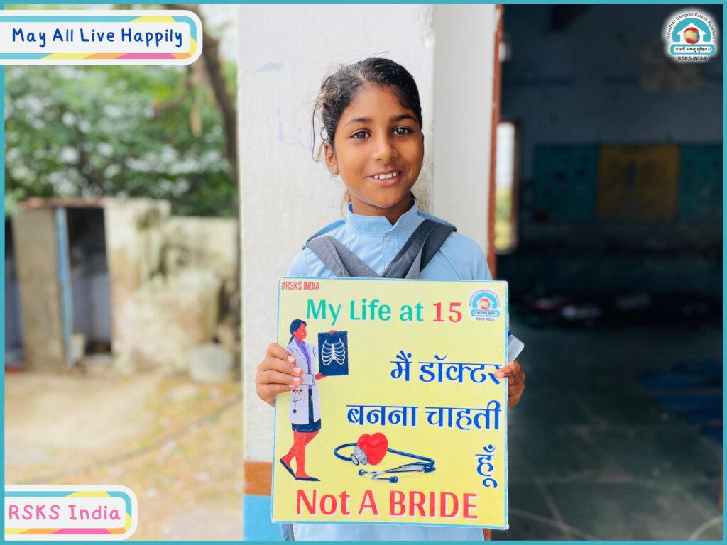 Rajasthan Samgrah Kalyan Sansthan (RSKS India) organized the "My Childhood, My Rights" campaign in various villages, and luckily, my village was one of the selected ones. When RSKS came to our school, their team members taught us about the adverse effects of early childhood marriage. They explained how it can prevent us from pursuing our dreams and reaching our full potential.