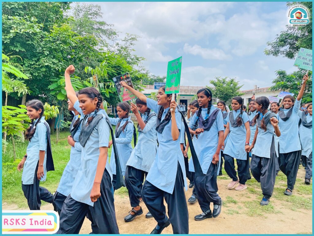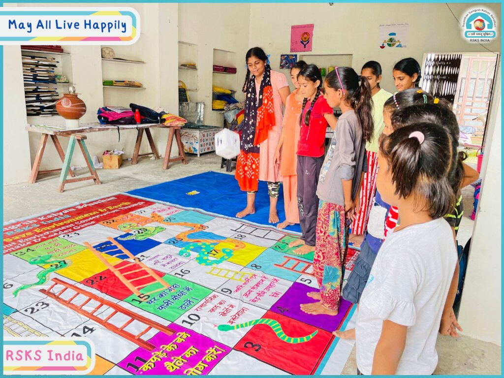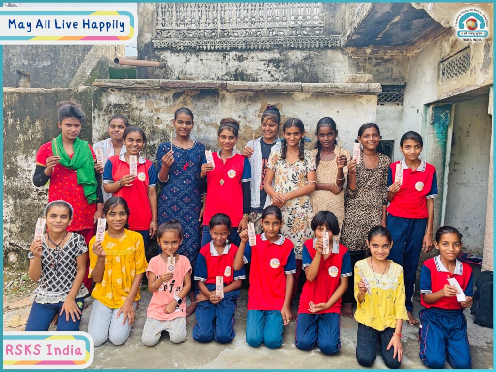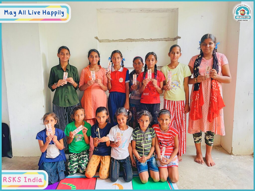The Environment Conservation Awareness program devised by RSKS India sought to make learning about environmental conservation engaging and impactful. The team visited all five Pathshala Schools and employed creative methods such as playing a snake and ladder game to convey the message of environmental protection. Through interactive sessions, the team explained the adverse effects of indiscriminate tree cutting and emphasized the vital role trees play in sustaining the ecosystem. As a symbol of commitment, all 225 Pathshala School girl children took an oath to protect trees. To further empower the students to contribute to environmental conservation, RSKS India distributed seed pens to each of the 225 girl children. These unique pens, made from biodegradable materials and embedded with seeds, served as a tangible reminder of their commitment to sustainability.