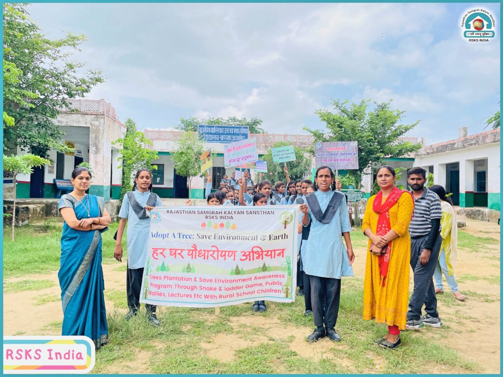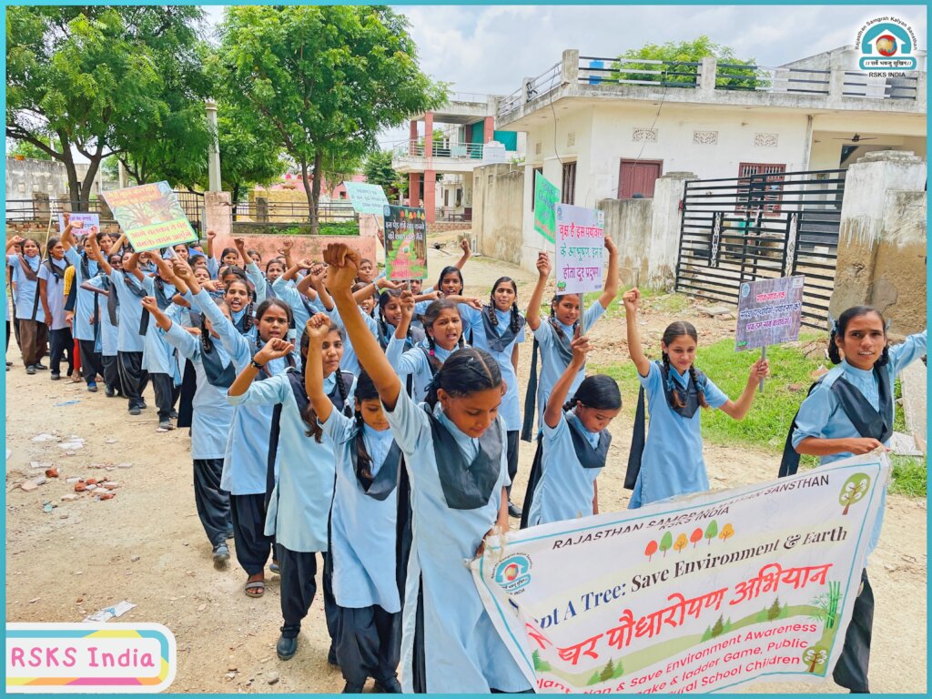 In many rural areas, the lack of awareness about environmental conservation poses a significant challenge. The absence of comprehensive education on the importance of preserving nature often leads to practices that harm the environment, such as the indiscriminate cutting down of trees. Recognizing the urgent need to address this issue, Rajasthan Samgrah Kalyan Sansthan organized the Environment Conservation Awareness at the Pathshala School program. The goal was to instill a sense of environmental responsibility in the young minds of the Pathshala School girl children.