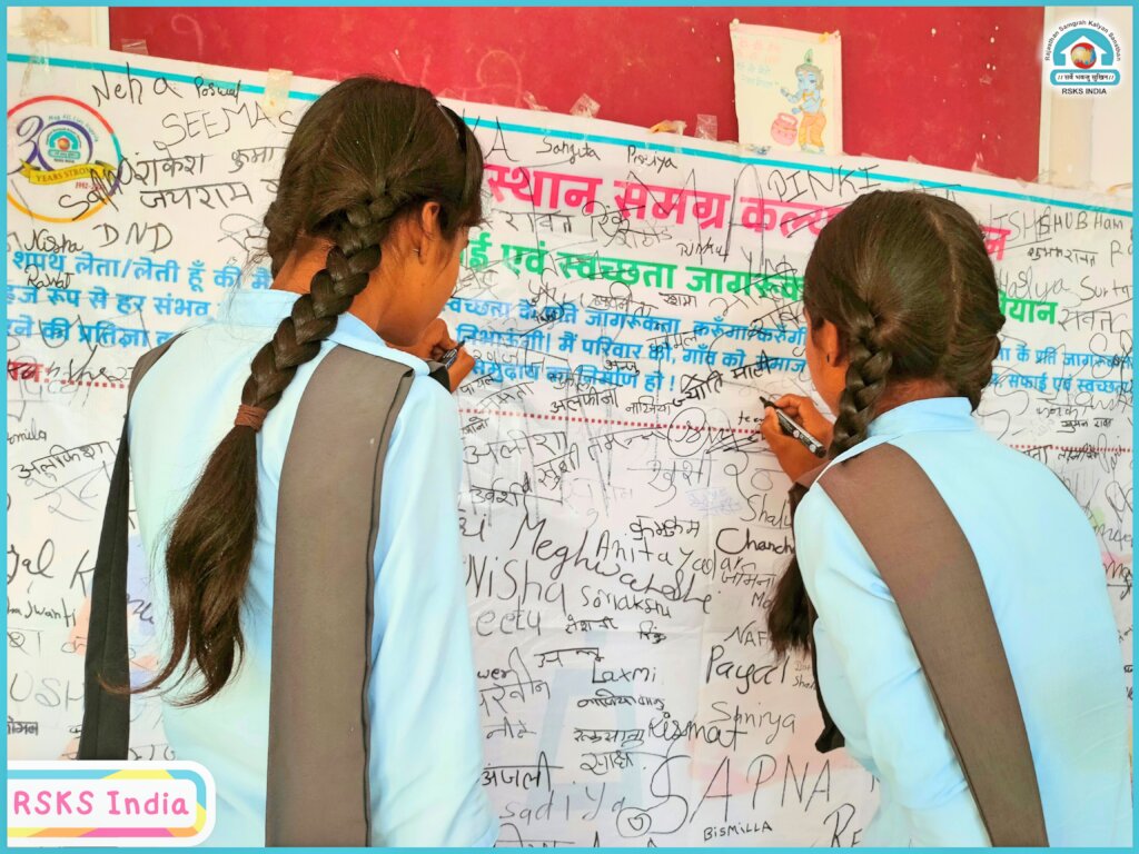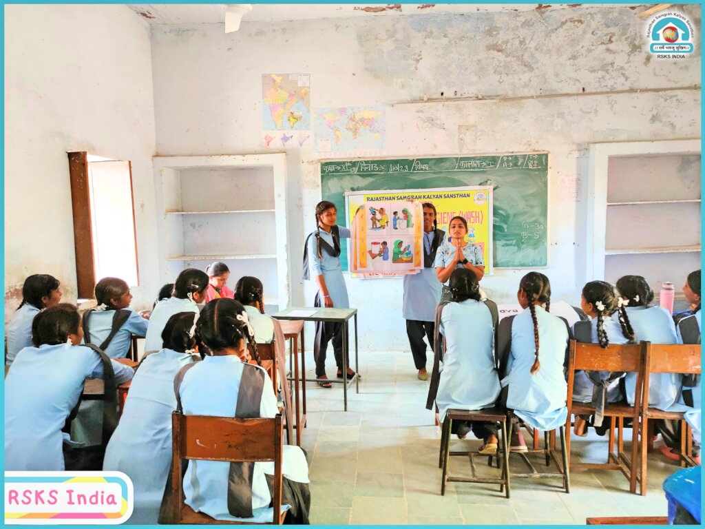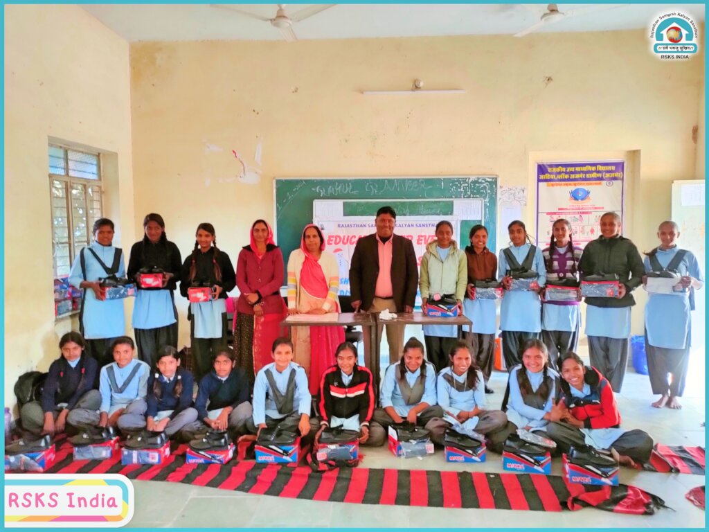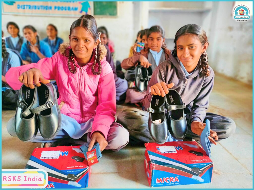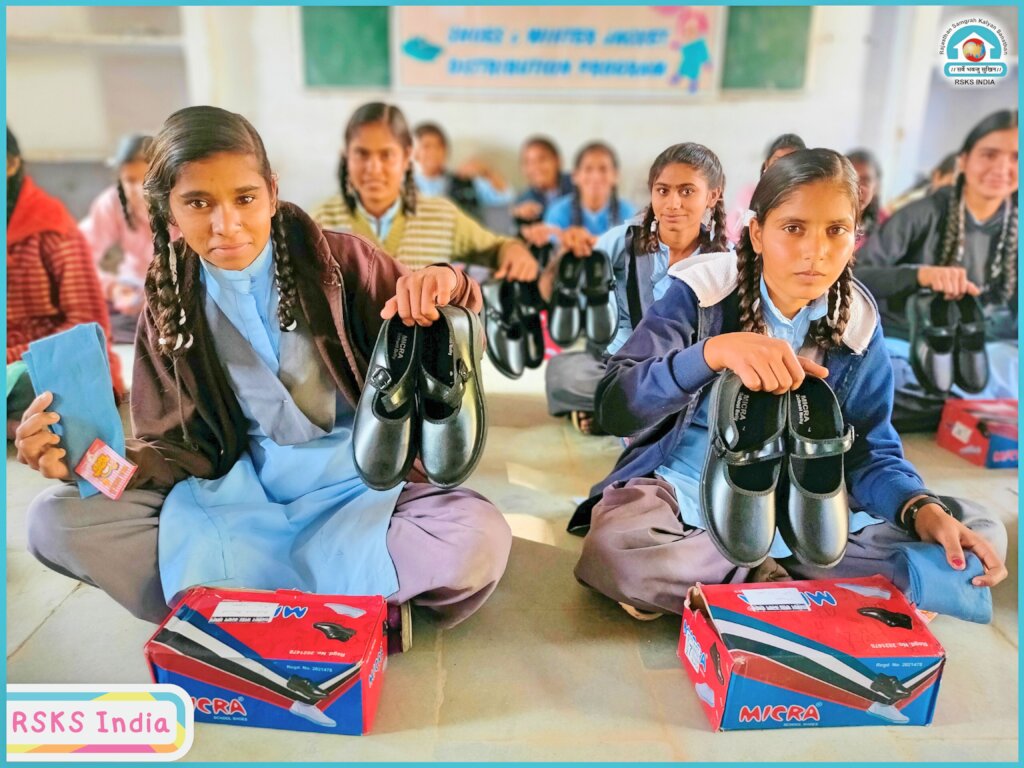 To alleviate the challenge of inadequate footwear among rural school girls, Rajasthan Samgrah Kalyan Sansthan implemented the School Shoes & Socks Distribution Program. The initiative targeted 1350 girls from 60 different rural schools who hail from financially struggling families. The RSKS India team provided these girls with school shoes and socks free of cost, ensuring that they have the appropriate footwear to attend school comfortably. The selection process focused on identifying girls from economically disadvantaged backgrounds who often went to school either barefoot or in slippers. The distribution of school shoes and socks not only addresses an immediate need but also contributes to creating a more conducive learning environment. The quality of the provided shoes and socks was a priority, ensuring durability and comfort for the girl children.