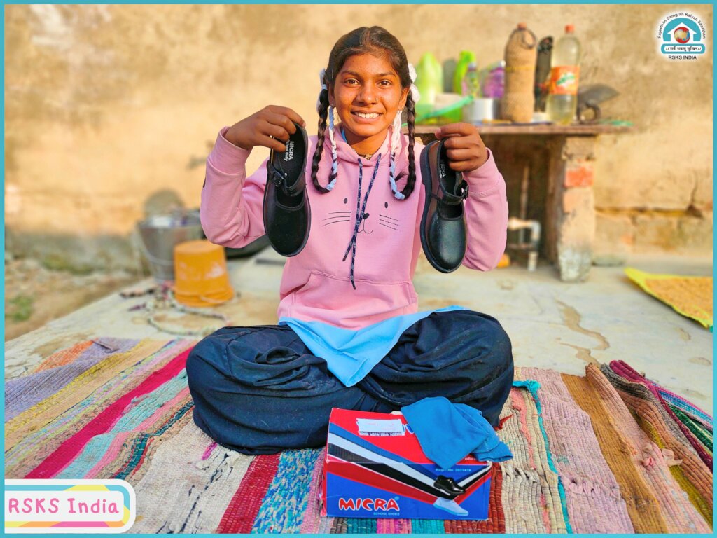 The School Shoes & Socks Distribution Program by Rajasthan Samgrah Kalyan Sansthan has had a transformative impact on the lives of 1350 rural school girls across 60 schools in Rajasthan. The school shoes and socks has directly addressed a critical need, enabling these girls to attend school with proper footwear. The impact goes beyond the physical comfort; it influences their overall well-being and educational experience. The girls, who previously had to navigate varied terrains either barefoot or in inadequate footwear, now have the means to travel to school comfortably. The distribution of quality shoes and socks not only ensures protection from potential injuries but also contributes to improved attendance and focus on studies. Feedback collected from families and the girls themselves during home visits by the RSKS India team indicated a high level of appreciation for the initiative.