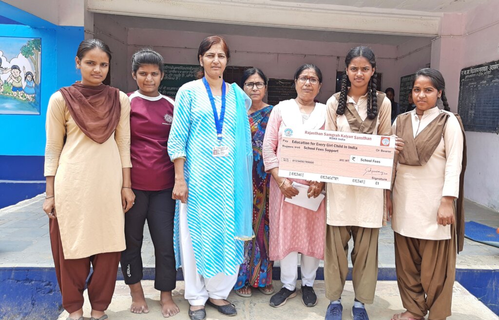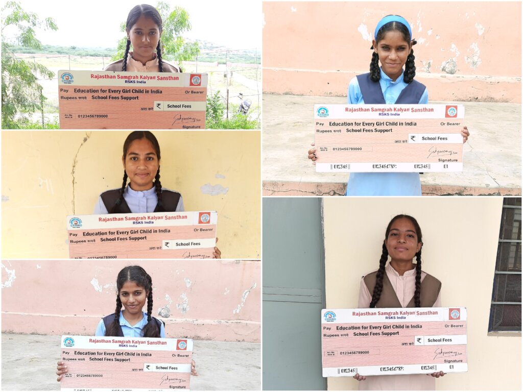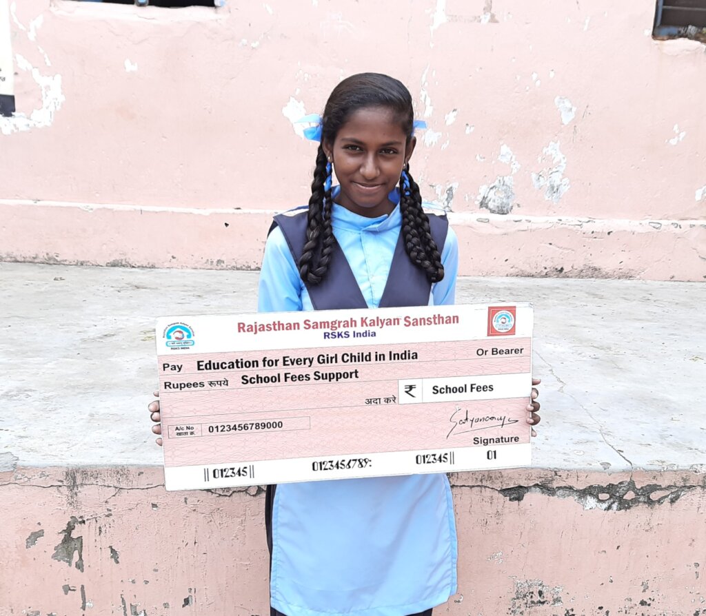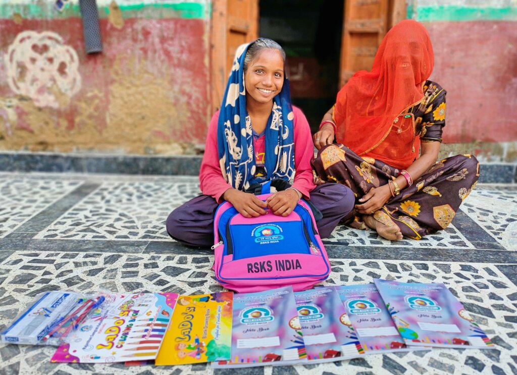 One day there were some people from Rajasthan Samgrah Kalyan Sansthan who visited to our school and asked my teachers about the girls who are intelligent but are having problem in their education stuff due to poor condition of the family. My teacher knew my problems so she gave my name and then the team member from RSKS India came to me and asked me about my name and then visited my house after the school. After a month, the whole RSKS India team came to my school and provided me all the education stuff which I needed like school bag, registers, geometry box, drawing book etc and along with this they also gave me a hygiene kit which contained the sanitary napkin, handkerchief, soap etc. After this they also told me how to use the sanitary napkin and after few days they came back again at my home to take the feedback of the whole program from my parents and from me. After few week they called me again to ask my educational needs and how my education is going.