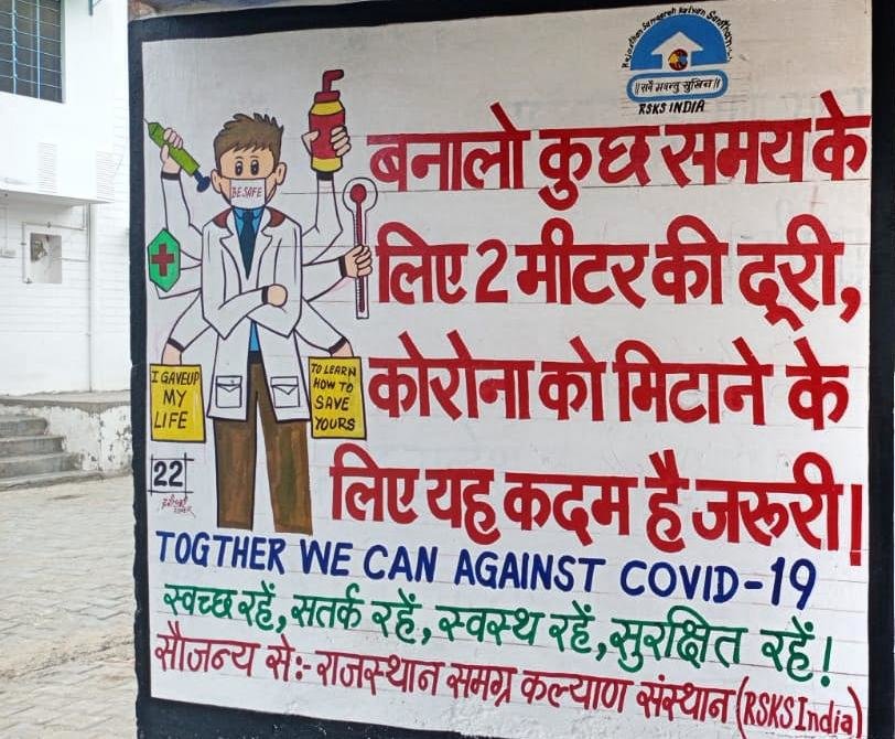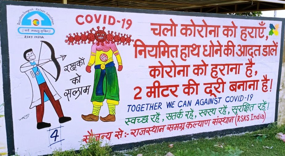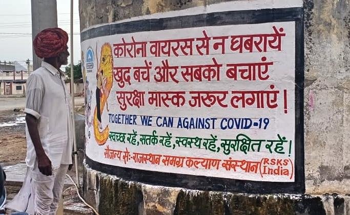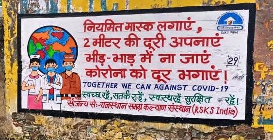 Every effort is being made by RSKS India to spread awareness about the corona. In this series, 7 inaccessible villages have been selected by the RSKS Organization, in collaboration with GlobalGiving for wall paintings and 50 awareness paintings have been made for the general public. These wall paintings are giving awareness message. These wall paintings are made in public place/ where there is movement of people so that the visiting people are reading the message of covid-19. This wall painting is made from oil paint which will give awareness message to people for long time and will be helpful for people.