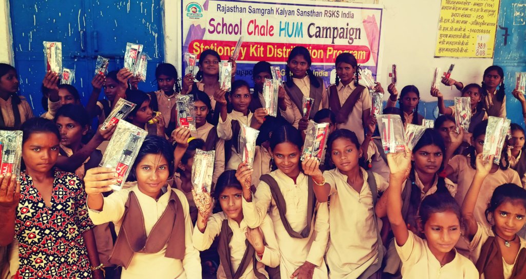 In today's era of change, to promote girl education, Rajasthan Samgrah Kalyan Sansthan organized a program in girl schools at nadi village. In which distribution of STATIONERY & Educational Stuff were given to girls of deprived community. All this were given to the needy girls with the support of donors and GlobalGiving. There was lack of stationary items for which the organization distributed stationary to the girls using which they become happy and now love to come to school with new stationary.