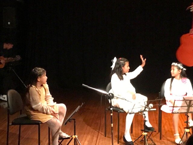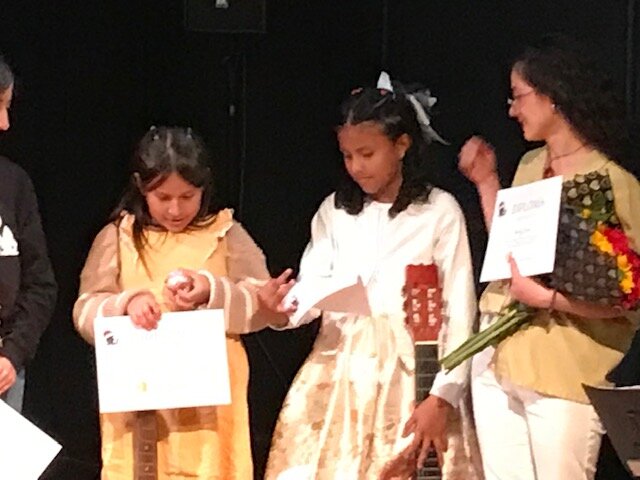 A lo largo de los años, nuestra biblioteca comunitaria ha demostrado una y otra vez que es mucho más que una biblioteca. Además de ser un espacio acogedor con una rica colección de libros y revistas para personas de todas las edades y procedencias, se ha convertido en un lugar donde los intereses comunes se arraigan y florecen. Un ejemplo de ello es el conjunto de guitarra de niñas, que surgió cuando un profesor de guitarra voluntario empezó a dar clases a niños de la comunidad. Muy pronto, el compromiso y la responsabilidad de tres niñas de entre siete y diez años se hicieron evidentes, y el profesor centró sus esfuerzos en apoyar su desarrollo musical.
