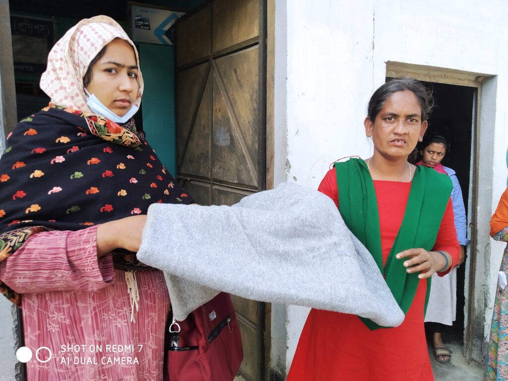 (Unknown) Adolescent girl with intellectually disable. She is one of the target beneficiaries of our program. She is comes from poor family. She is living rural area at Belgacha Union with her parents at Islampur upazilla under Jamalpur district northern part of Bangladesh .Her parents are lives with in hard core poverty. Parents have dream to her daughter for her Fulfill life. Now parents was afraid for winter weather to protect her daughter. on the date 3rd December 2023 Our staff member /Teacher support a new Blanket .She is very happy for receiving this support and family express grate full to organization activities.