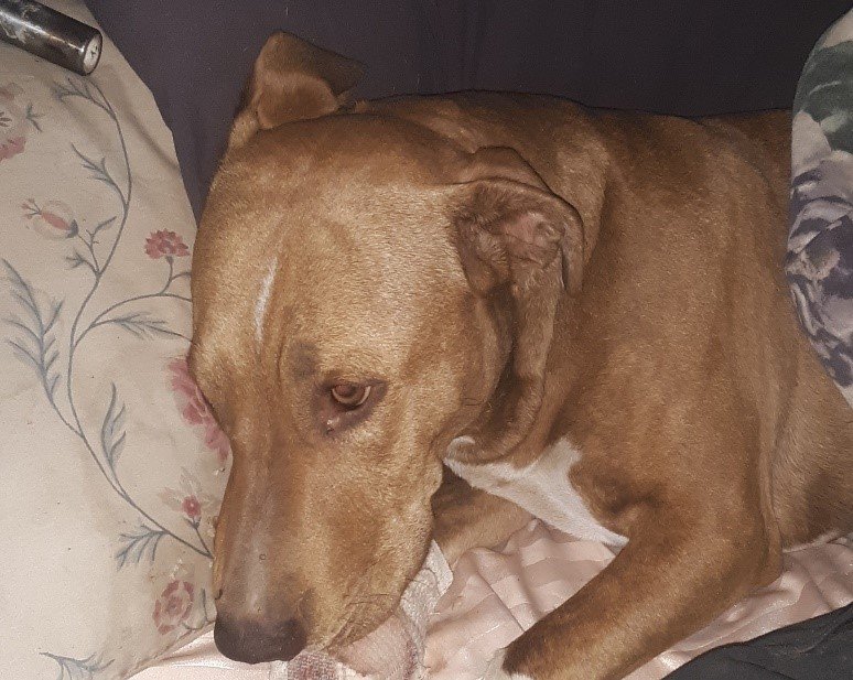 Amy has been living in her RV for the past three years in Arizona at a homeless encampment. She does not utilize any public services and has zero income. Amy does not have any reliable transportation and others in the camp help. Amy contacted Feeding Pets of the Homeless because her two-year-old female pit bull had been shot in the right front paw by another homeless individual at the camp. The dog was in severe pain and bleeding. An intake interview was completed and homeless verification was provided. The case manager approved an exam at one of the 1,060 veterinary hospitals in our network across the country. Following the exam, it was determined that Little Girl would need her leg amputated due to the injury. Feeding Pets of the Homeless contributed $1,300 towards Little Girls surgery. The hospital discounted over $200.