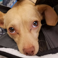 June 4 - Mr. Wheeler called Pets of the Homeless regarding his dog, Matty, a 6 year old in-tact male Chihuahua who had been in a fight with another dog. Mr. Wheeler is a homeless man who lives in a tent on property in Santa Rosa, CA. Someone came to the gate and his dog got in a fight. He has been homeless for 23 years and he heard about us through Dr. Henriksen at ACME Pet Repair in Occidental, CA. Matty’s eye had been injured badly in the dog fight and it had happened over a week ago. We approved an examination with Dr. Henriksen.