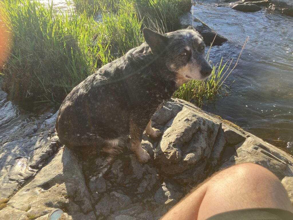Hi, my name is Luna. I’m a 10-year-old female blue healer. I live with my dad in a shed in the woods. We are currently experiencing homelessness.