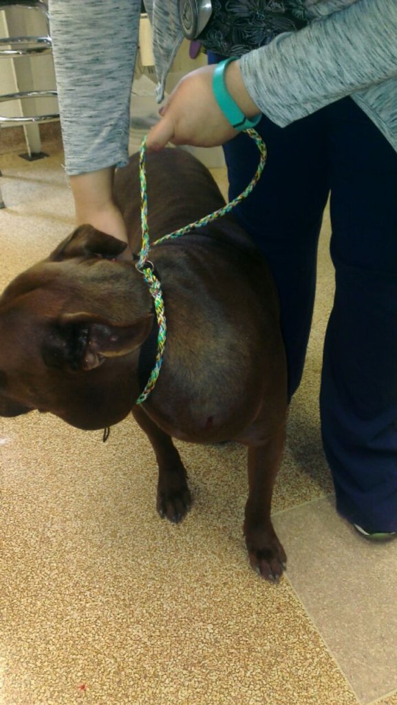 Pets of the Homeless received a call from a homeless woman who lives in a tent under a bridge in Bakersfield, CA about her dog, Sadie, a five-year-old female Pit Bull Terrier who had a rapidly growing tumor on the side of her neck. In three weeks, it has grown from the size of a golf ball to larger than a grapefruit! Pets of the Homeless approved an examination, after calling over six new veterinary hospitals! Unfortunately, some hospitals do not want to treat pets of the homeless.