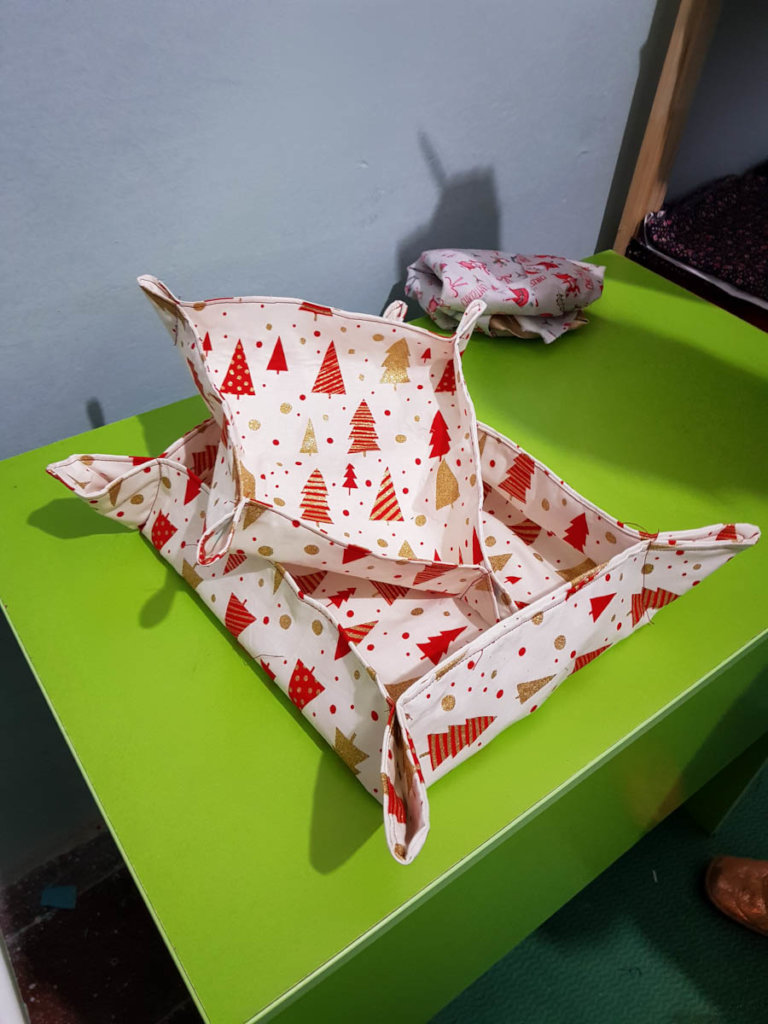 First of all, we were able to purchase furniture, such as a bookcase and chairs, to make the workshop space more comfortable and functional. We also purchased fabric (which is our main material) as well as other items (such as yarn, thread, ribbon and needles) for the making of bags and zipper pouches. As the Christmas holidays are approaching, we decided to participate in a municipal bazaar showcasing the women’s creations. We were able to buy Christmas-themed fabric to prepare items for the bazaar. We also started making pouches and hats with yarn, as some of the participants know how to knit or crochet, and it has been a success! We plan to showcase them in the Christmas bazaar along with the other creations!