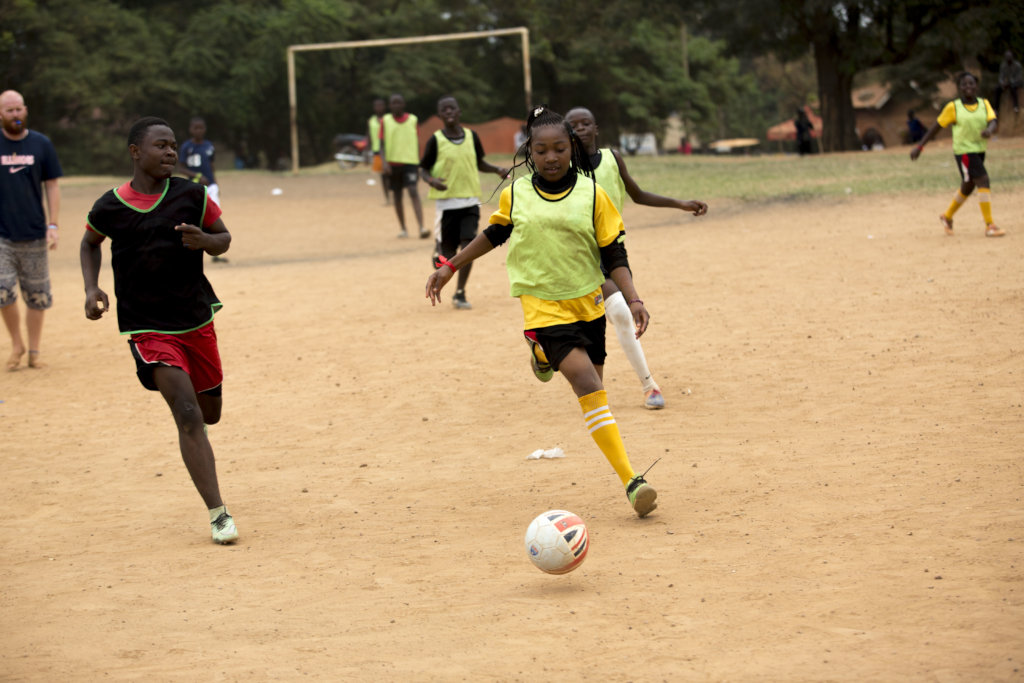 With tournament play winding down, the Girls teams played another fun game and the Super Stars won again, 1-0. For their great sportsmanship, the two teams were awarded 3 new soccer balls, and each goal scorer was given a new washing basin to take home. Late into the day, the u23s, led by Coach Aldo, kick started their game against Nkele FC, playing full pitch since the younger age groups had finished their games. The match was lively and fast-paced with neither team willing to back down. It ended 0-0 resulting in an elimination round of penalty kicks. With a huge crowd of both children and adults watching, SWB smashed their fifth and final kick off the crossbar, losing the match, but winning over some fans!
