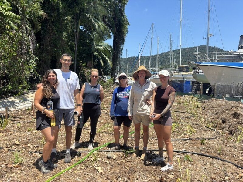 EcoBarge Clean Seas (Australia) in the Whitsunday Islands is restoring a degraded riparian corridor - planting native trees, rebuilding habitat, and protecting water flowing to the Reef.