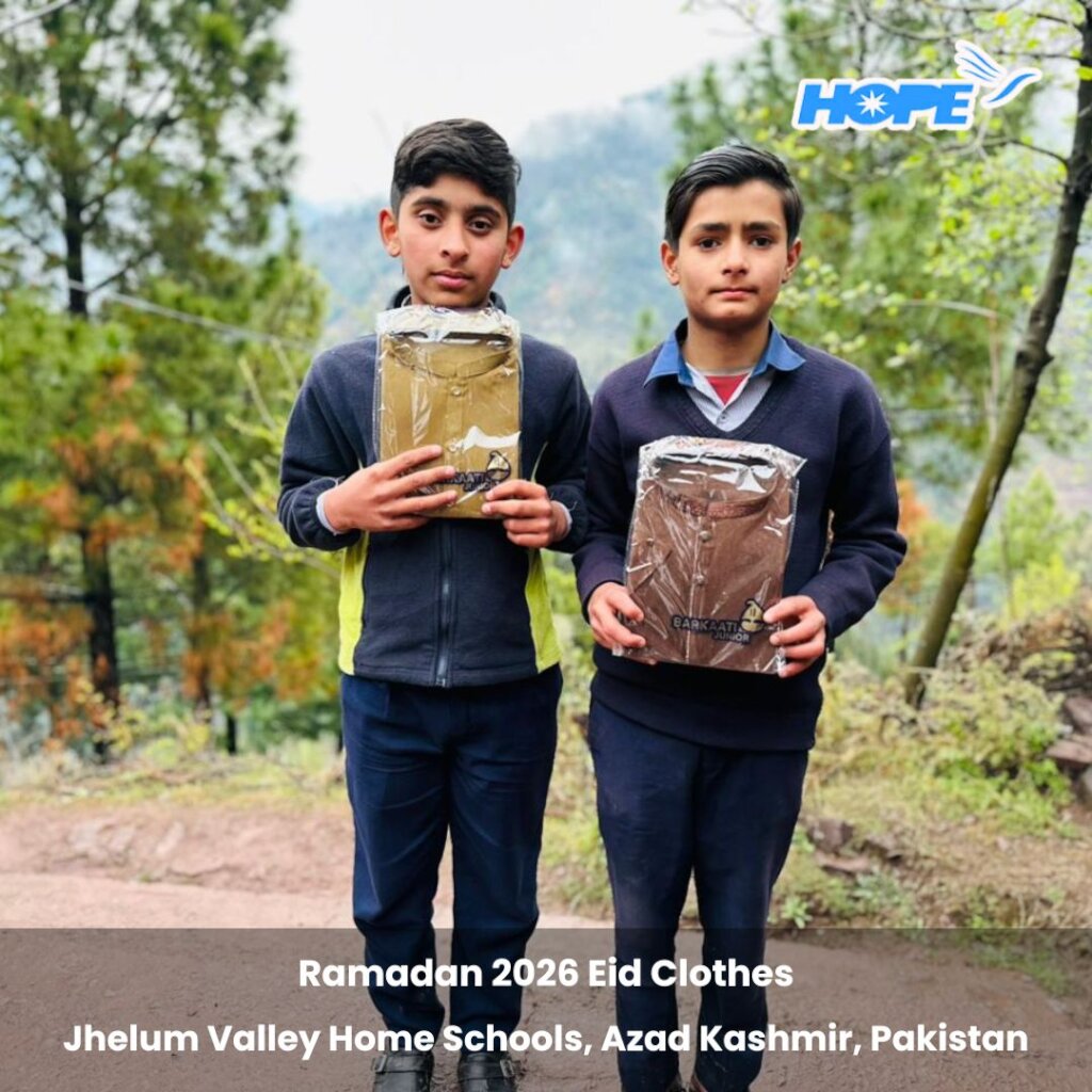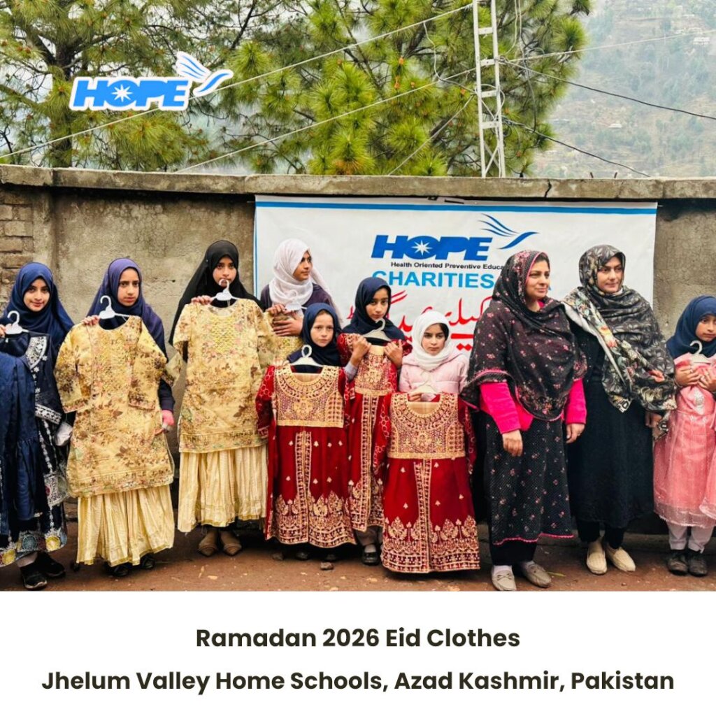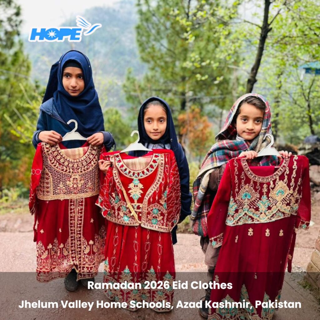 Featured on this blessed day are some special pictures from our Sit-Down Iftar and Eid Clothes distribution for 450 underserved children studying in HOPE's Jhelum Valley, Azad Kashmir Home Schools.  This event took place on March 19, 2026 at Parhor Home School in AJK and included children from various HOPE Home Schools scattered throughout Jhelum Valley.  This effort was made possible by the contributions of our supporters.  Enjoy!