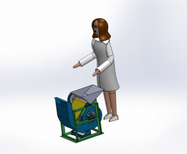 The winnower is being built based on a design made by a group of students from Calvin College in 2015 and used in different parts of the world for the past 10 years. It is a manual and portable machine that can be the placed where processing is performed normally at harvest. The original design is seen in Figures 1 and 2.
