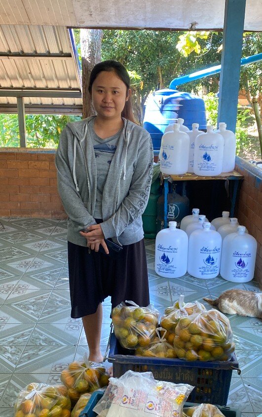 Koon, who studied nutrition and graduated during the COVID-19 lockdown, stopped by with her baby daughter and a crate of sweet tangerines from her family’s farm. After working as a chef in the city and later closer to home in Phrao, she married into a farming family that has diversified beyond rice and corn. Today, they are proud producers of fruit, and her visit was a joyful reminder of how paths continue to unfold in unexpected ways.