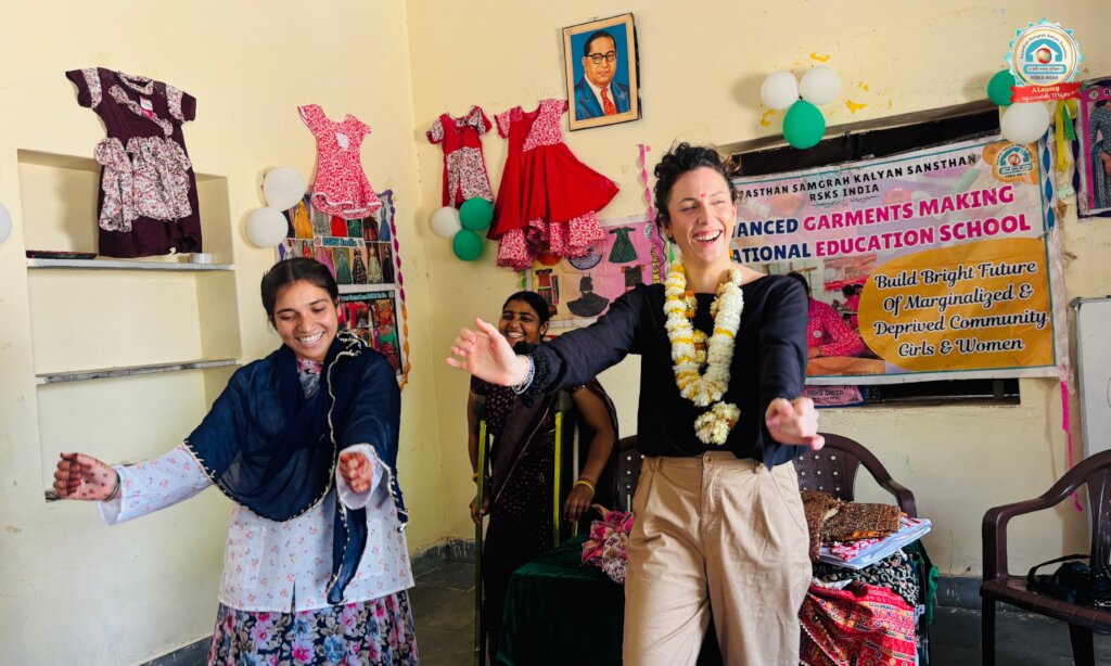 I was incredibly touched by the warmth with which the girls and the teacher welcomed me. They showed me the garments they had made, taught me how to sew, dressed me in a traditional Rajasthani outfit, and made me feel like part of their family. The time I spent there was so special that, two days later, I decided to return to the centre to spend more time with them. After that, we visited another RSKS education centre, this time for younger girls between the ages of 10 and 19. The girls welcomed me with a beautiful song, flower garlands, and performances of dances and songs they love to do in their free time.