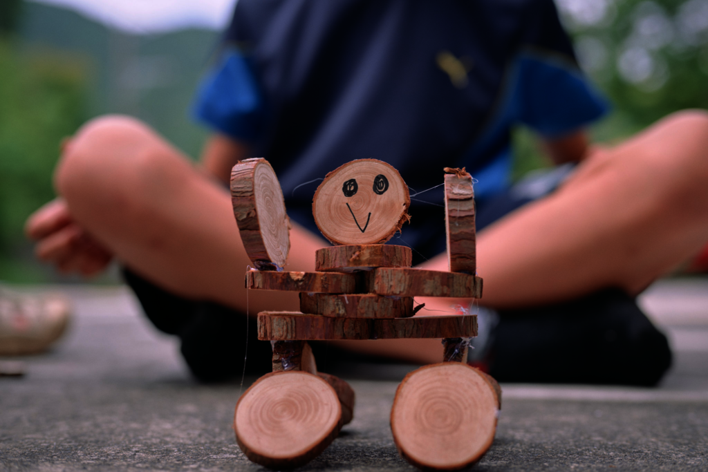 “It took a long time but I cut through an old tree trunk all by myself. I did not give up!” by camper at Kikori program
