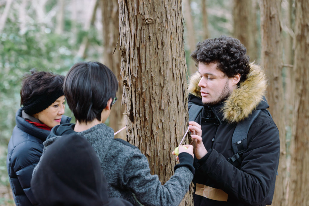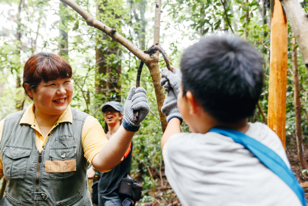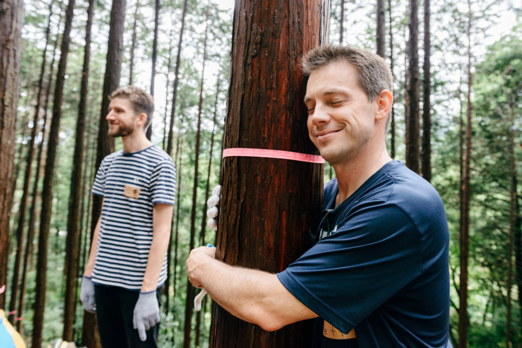 For lunch, we enjoyed a delicious obento. Everyone—campers, staff, and volunteers—meshed together and enjoyed one another’s company. Afterwards, we transitioned smoothly into the main event of the day: Kanbatsu! We learned that peeling off the tree’s bark helps it to fall naturally in order for the rest of forest to flourish. We thank Morito Odoru for an awesome kanbatsu workshop!