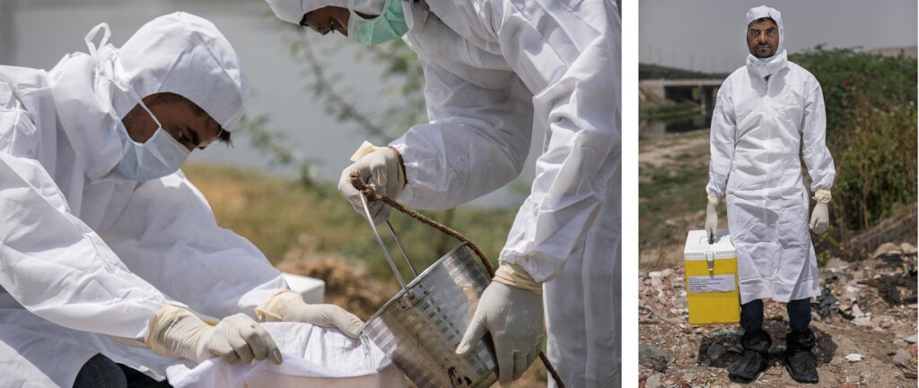 Polio workers collecting water samples in Ukraine