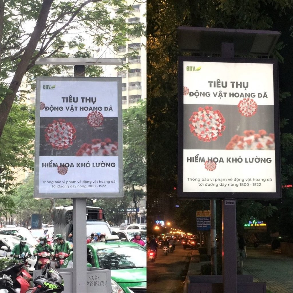 - Beginning March 2021, ENV messages on lightboxes around Hanoi have been further spreading the message that wildlife is not safe for consumption and to report wildlife crime to ENV's Wildlife Crime Hotline.