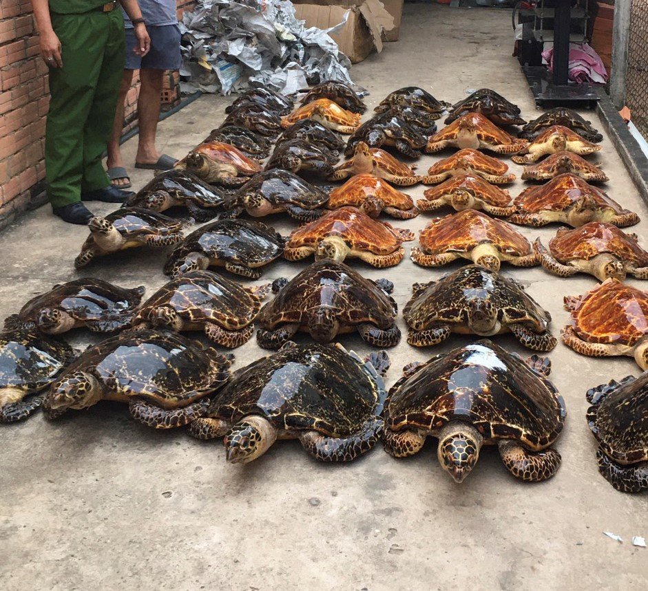 - Thirty nine critically endangered hawksbill sea turtle trophies were confiscated and the wildlife trafficker was arrested