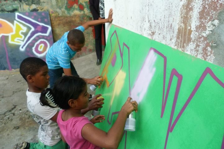 Our friends from SembrArte also organized a Sunday activity and together with the kids, painted a mural in one of the Santa Familia Building's walls.